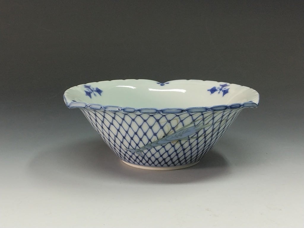 時代もの 銘:光寿 / 清水焼|Kiyomizu ware( 京都, -) 釉裏彩 海老藻 網染付 深鉢 1客 懐石道具 和食器 抹茶 tea chado ware おしゃれな器 近代工藝作家/伝統工芸工房 vintage ヴィンテージ 陶芸 陶磁器 古陶磁 porcelain, 高級料亭,レストラン食器茶事/茶会道具 art piece dbsy15424-x | こがん堂 大阪・梅田のアンティークショップ・古美術専門店