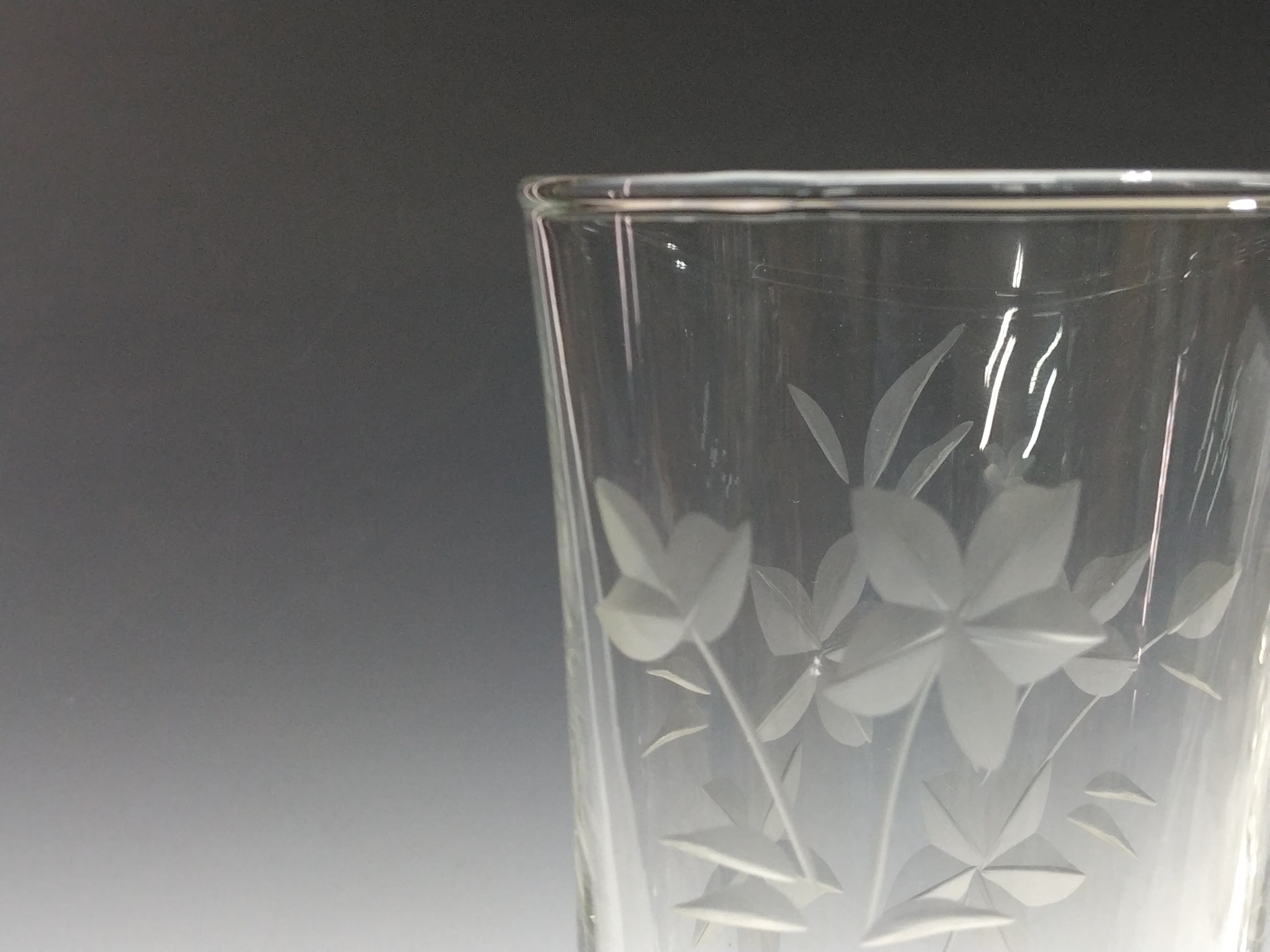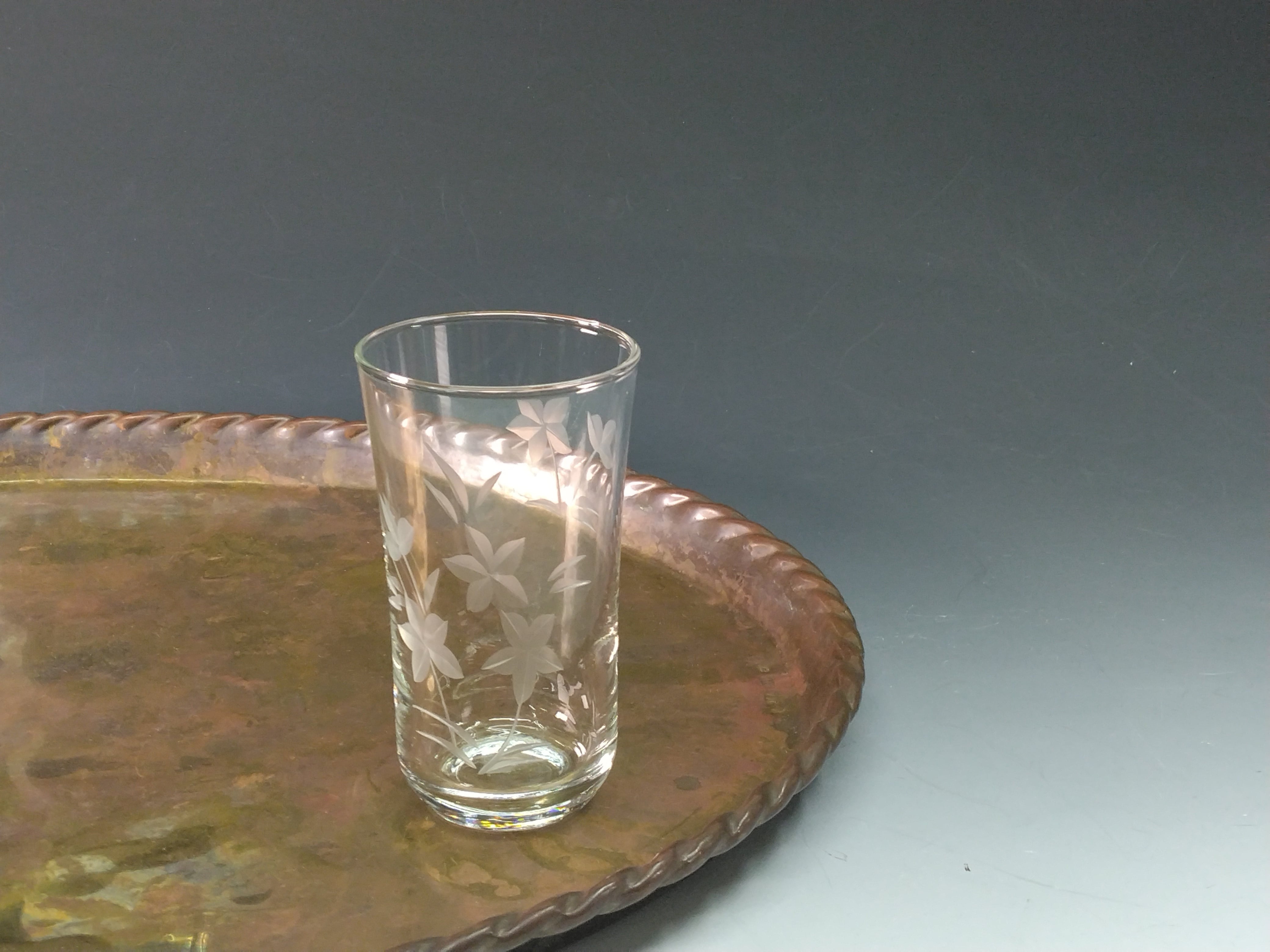 ヴィンテージ 手彫り エングレーブ 花卉文 硝子コップ/ タンブラー 1客 食器 おしゃれな器 近代工藝作家/伝統工芸工房 vintage ヴィンテージ ガラス細工 硝子工芸 glass art, 喫茶, cafe, カフェ, インテリア・ファッション dbsy15466