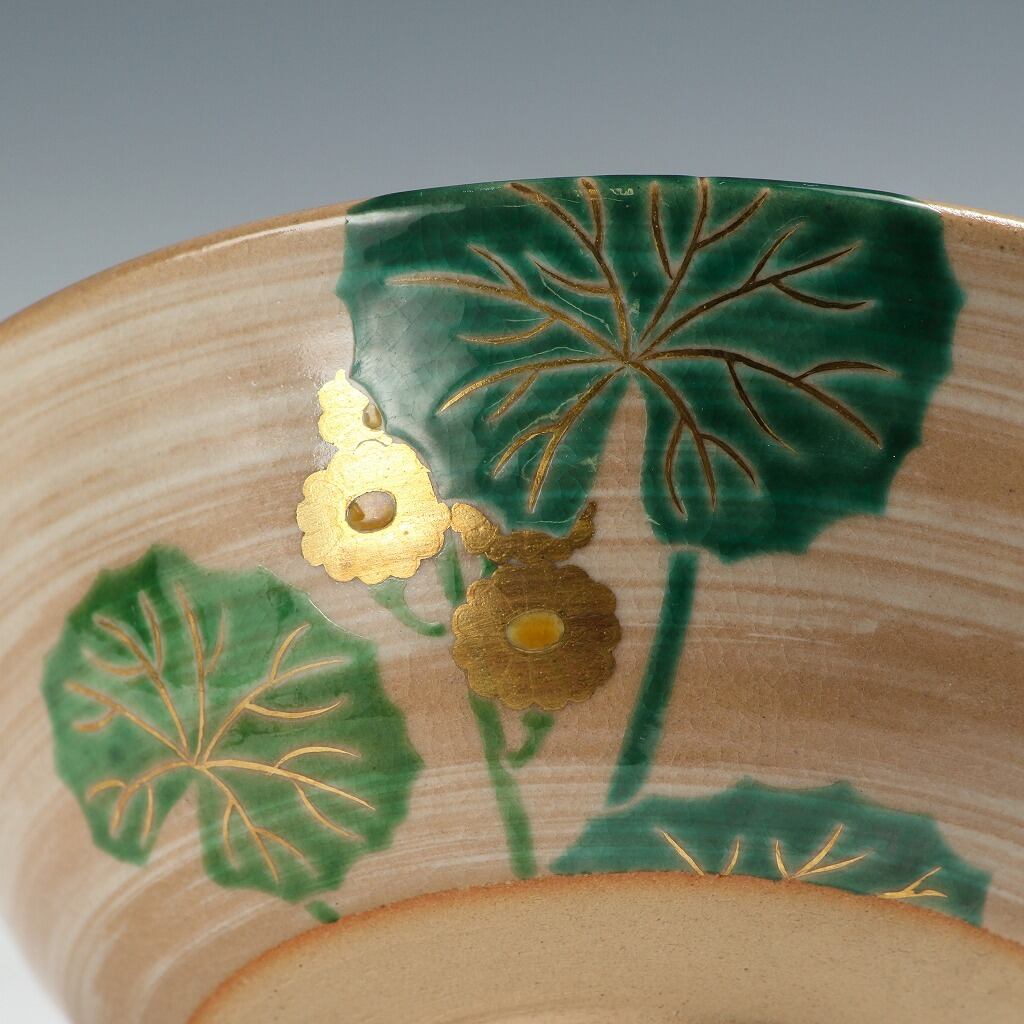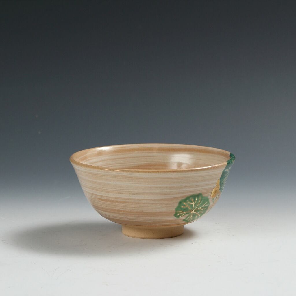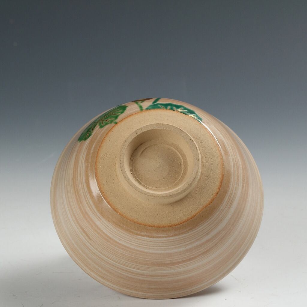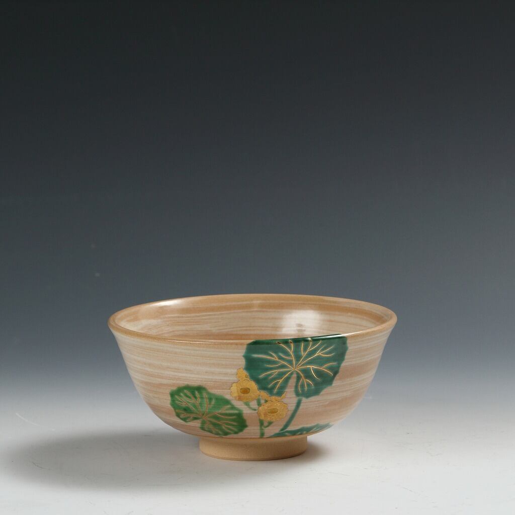 名工 岡田菁山|OKADA Seizan( 京都 ) 赤雲窯 色絵 石蕗絵 茶碗 抹茶 O-matcha, 現代工藝作家/伝統工芸工房 デッドストック used 陶芸 陶磁器 古陶磁 porcelain, モダン茶道具 tea chado ware 裏千家/表千家 茶事/茶会道具 art piece dbsy15860-b
