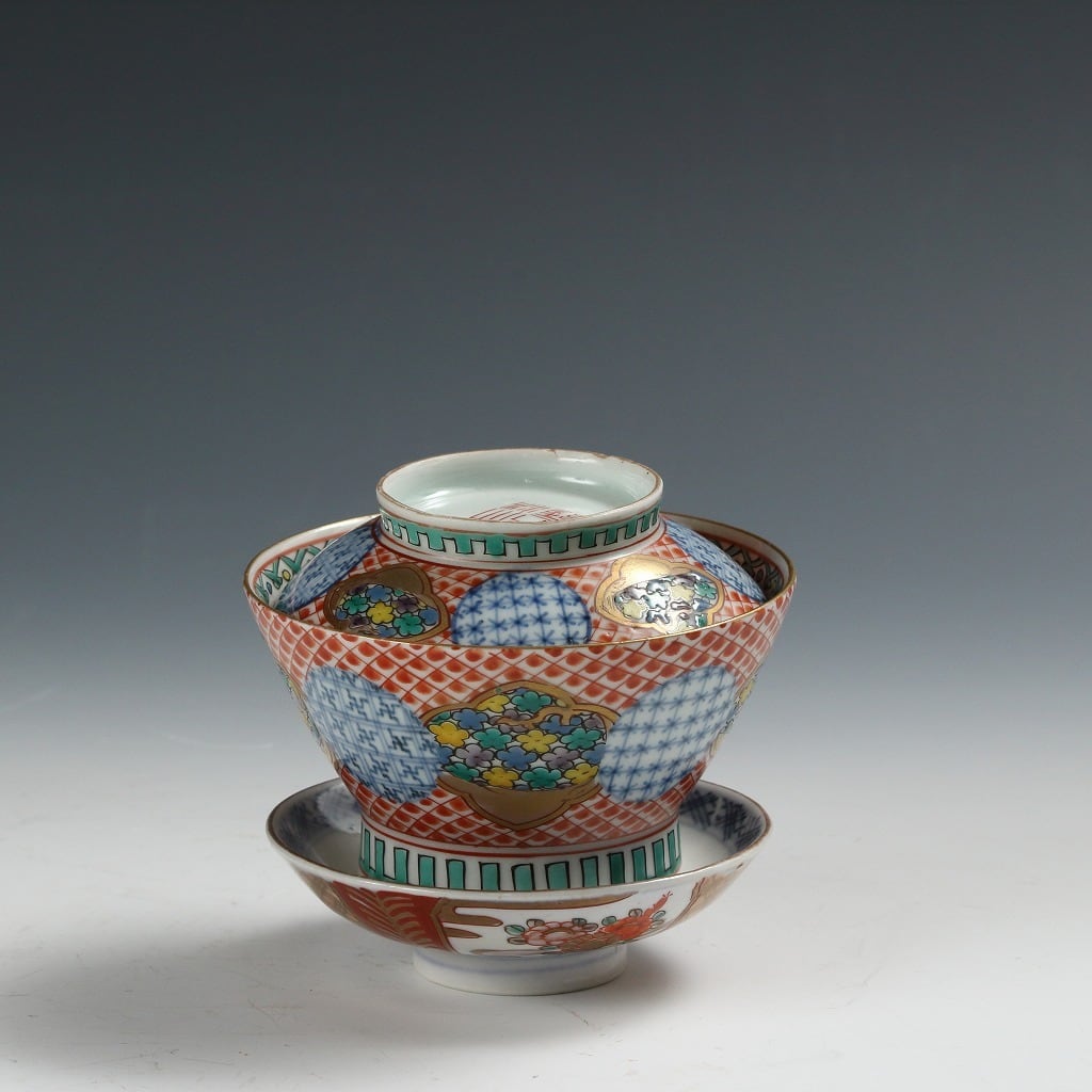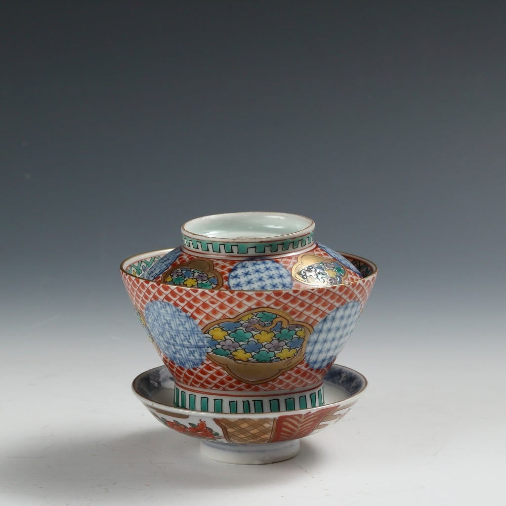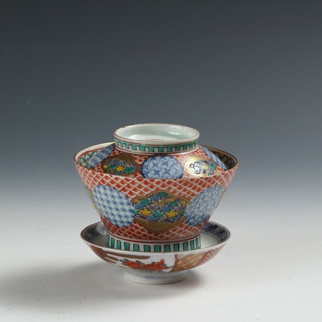 時代もの 伊万里 銘;「大清乾隆」|IMARI手描き赤絵金彩地紋花尽し絵 見立て蓋碗 瓶台添 煎茶道具 台湾茶 中国茶 茶藝 古美術 骨董 工藝作家/伝統工芸工房 古董 antique アンティーク 陶芸 陶磁器 古陶磁 porcelain, モダン茶道具 茶事/茶会道具 art piece dbsy15861-b