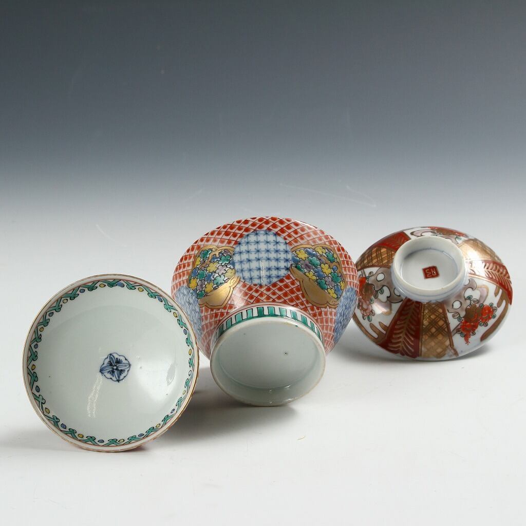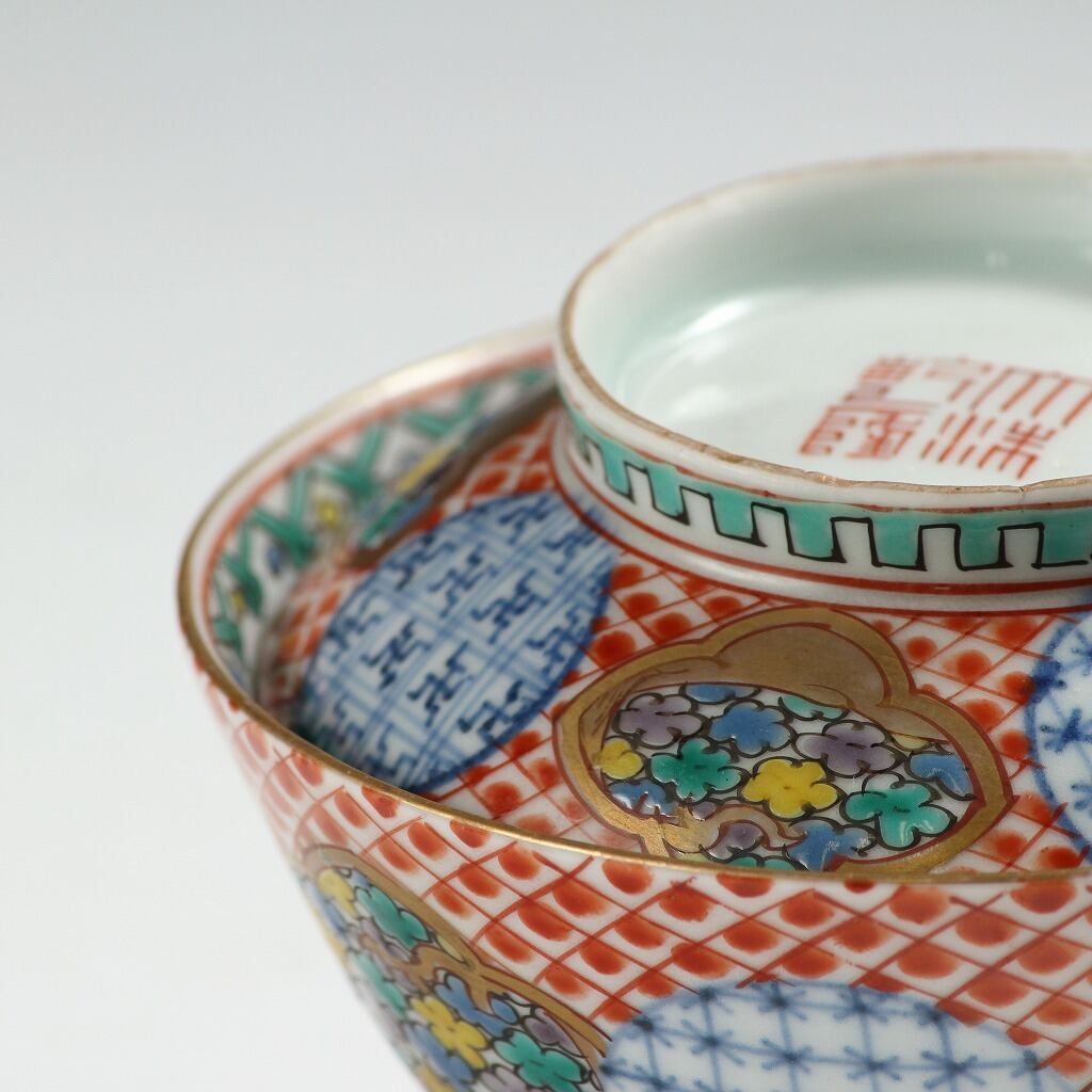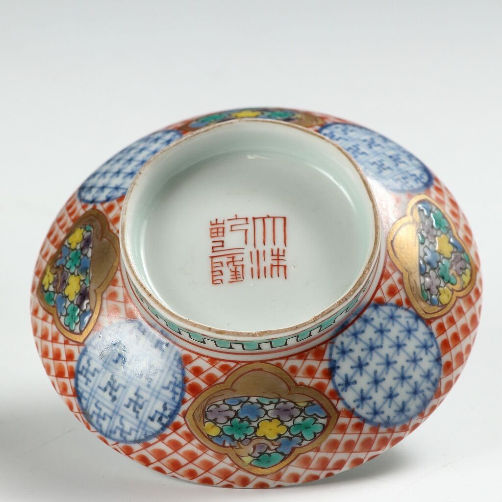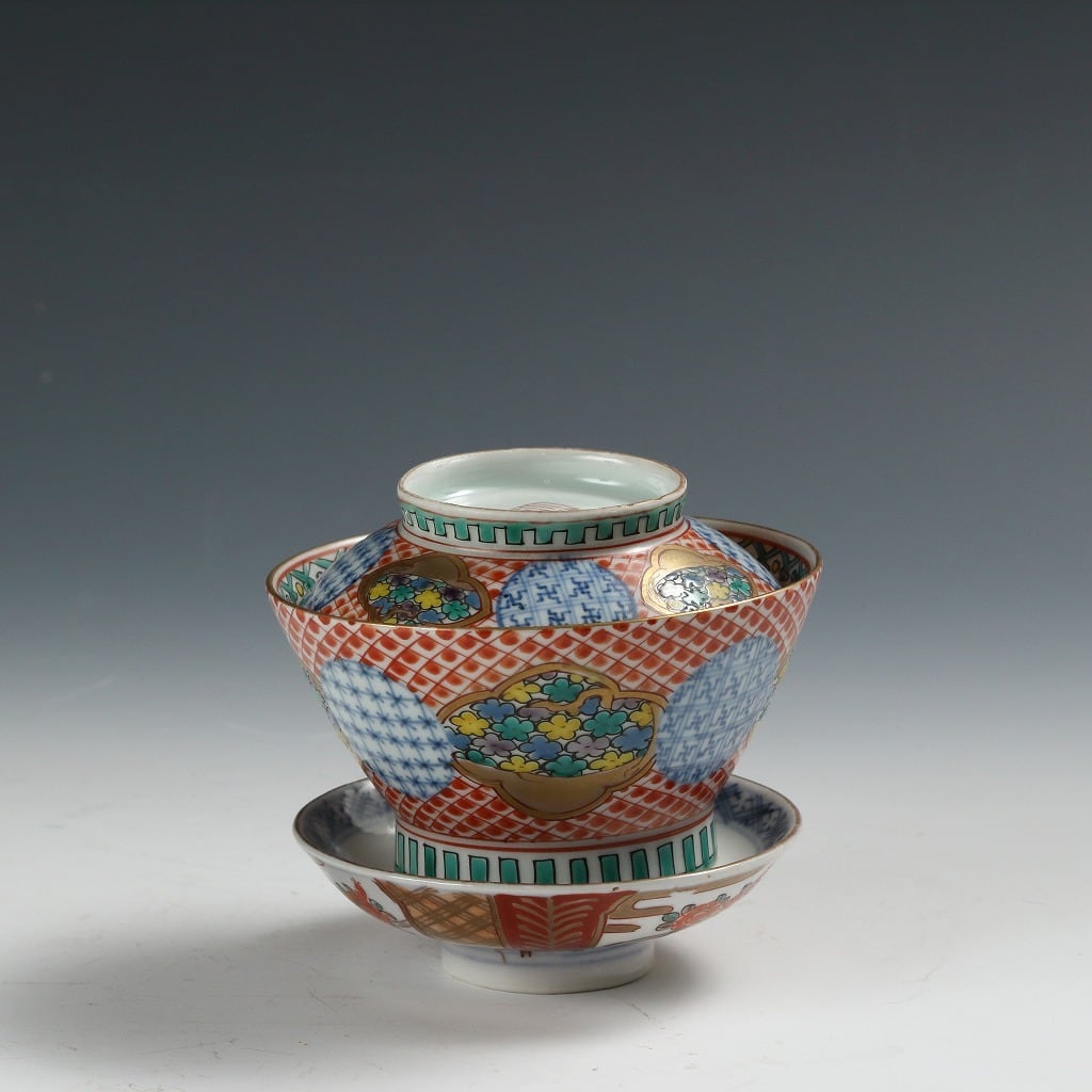 時代もの 伊万里 銘;「大清乾隆」|IMARI手描き赤絵金彩地紋花尽し絵 見立て蓋碗 瓶台添 煎茶道具 台湾茶 中国茶 茶藝 古美術 骨董 工藝作家/伝統工芸工房 古董 antique アンティーク 陶芸 陶磁器 古陶磁 porcelain, モダン茶道具 茶事/茶会道具 art piece dbsy15861-b