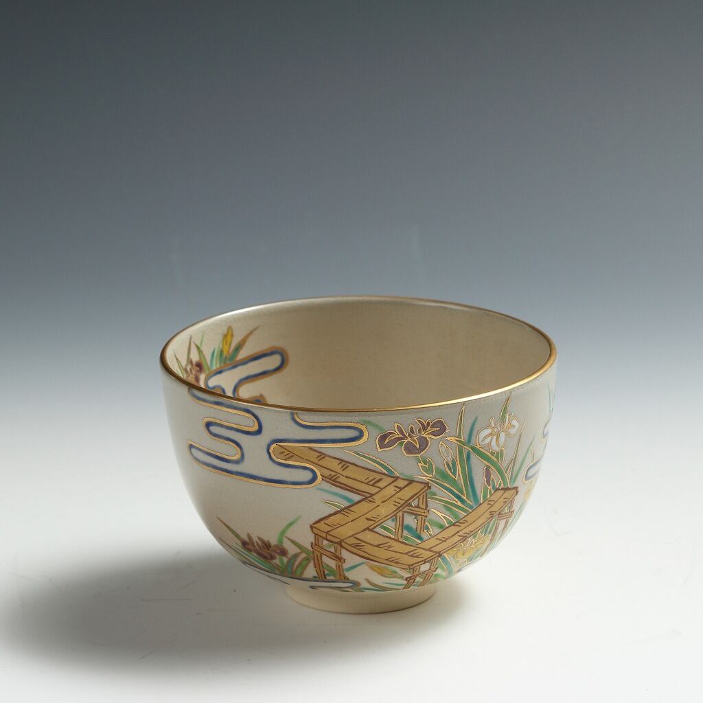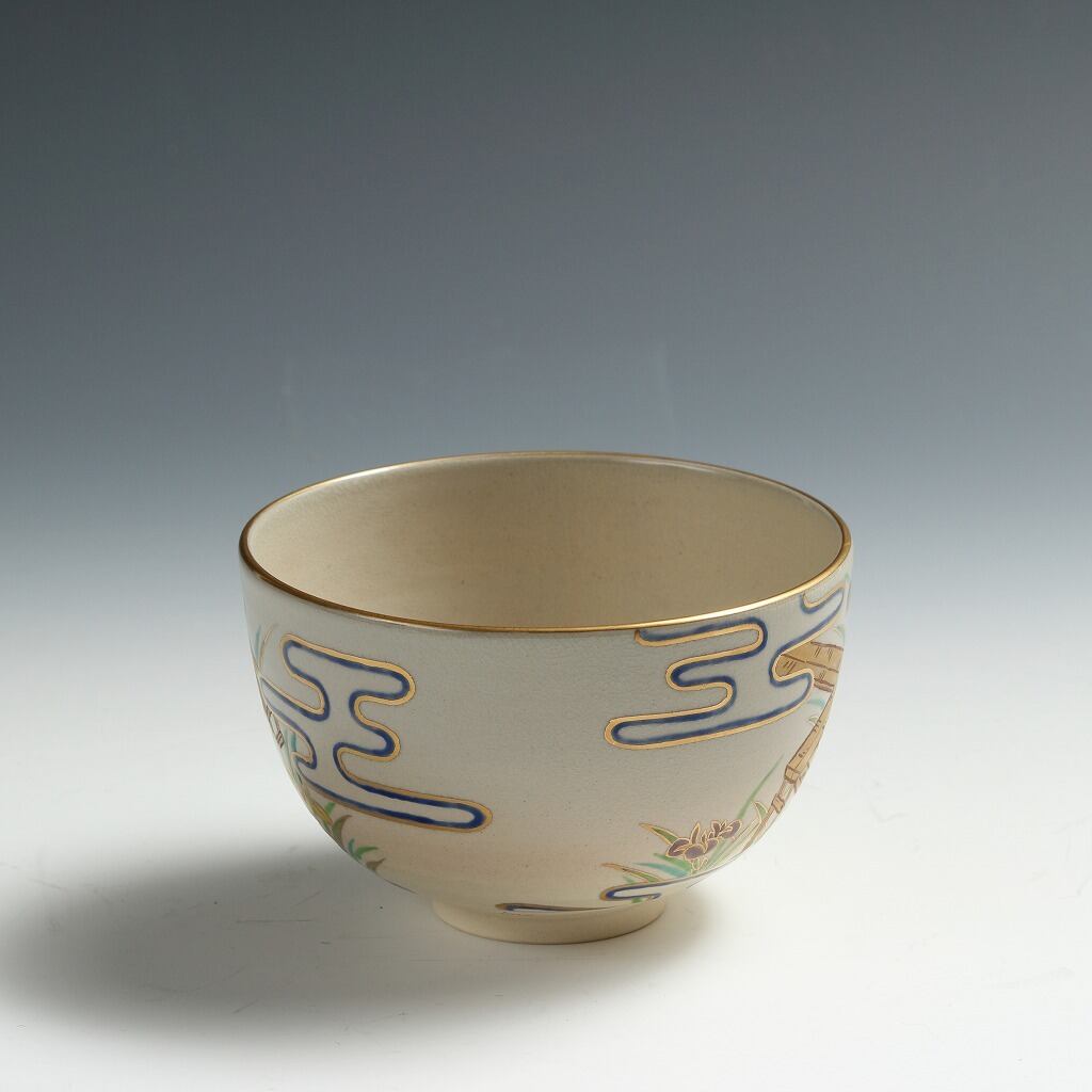 桃山窯 手塚玉堂 |TEDUKA Gyokudo 清水焼 色絵八橋絵 茶碗 共箱 抹茶 O-matcha, 現代工藝作家/伝統工芸工房 デッドストック used 陶芸 陶磁器 古陶磁 porcelain, モダン茶道具 tea chado ware 裏千家/表千家 茶事/茶会道具 art piece dbsy15785-g