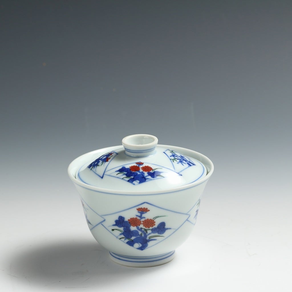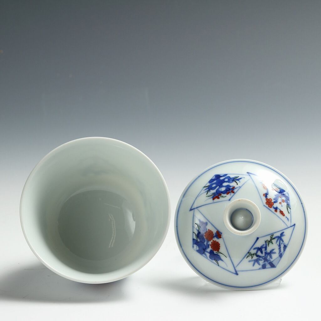 泰明窯 |Arita ware(佐賀, 昭和/1970年代頃) 色絵 手描き染付 蓋付碗/ 見立て蓋碗 //約200㏄ dbsy15786-b2ミ1 | こがん堂 大阪・梅田のアンティークショップ・古美術専門店