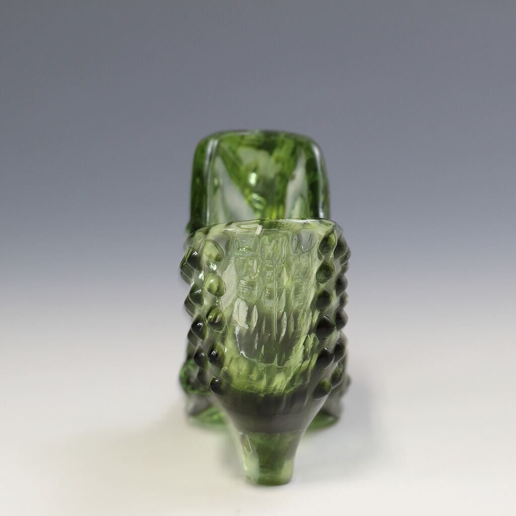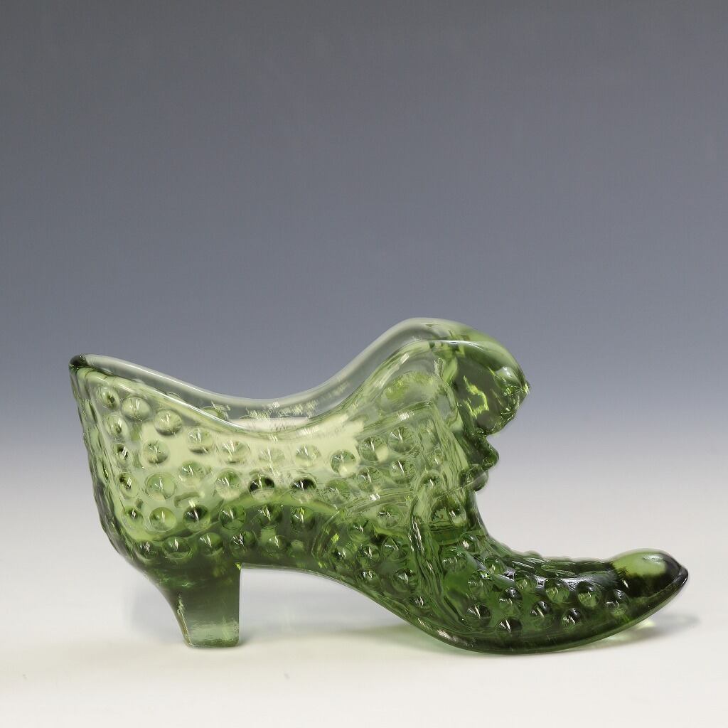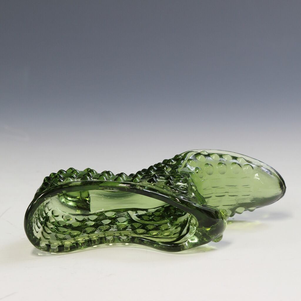 アメリカヴィンテージ FENTON|フェントン(USA,1950-70年代) モスグリーンボブネイル アートガラス キャットシューズ 女の子を素敵な処へ運ぶラッキーアイテム プレゼント/ラッキーアイテム ミッドセンチュリー・モダンデザイン ガラス細工 硝子工芸 glass art, コレクターズアイテム インテリア・ファッション dbsy15888-9