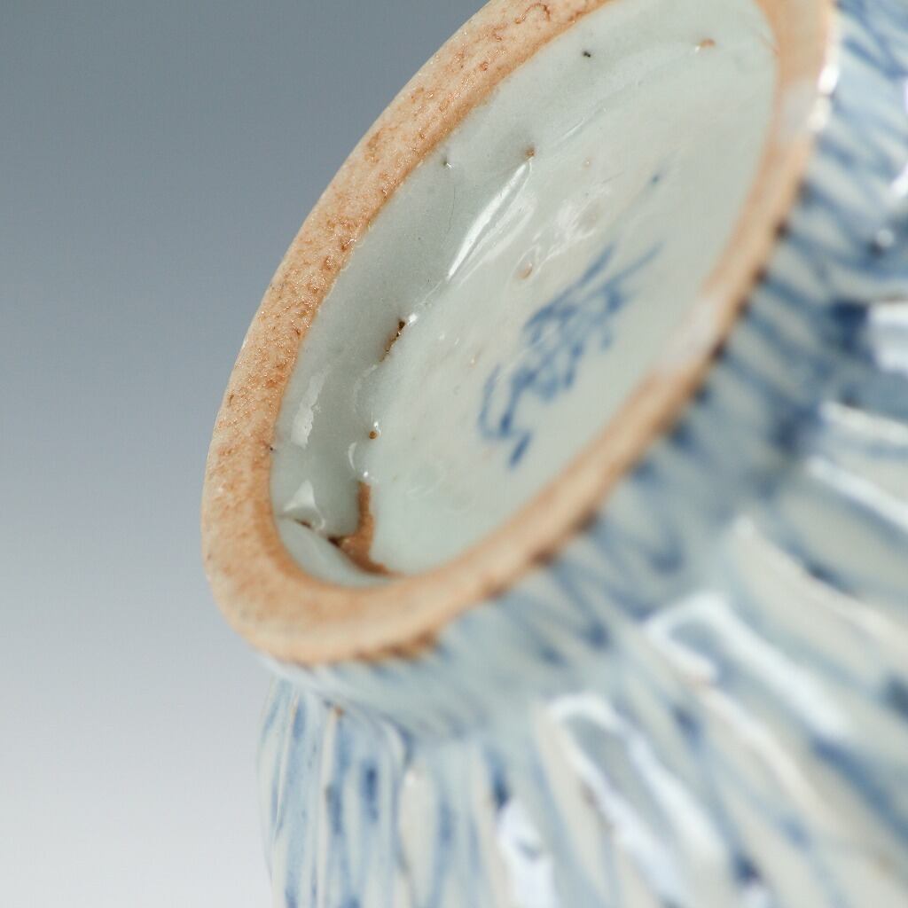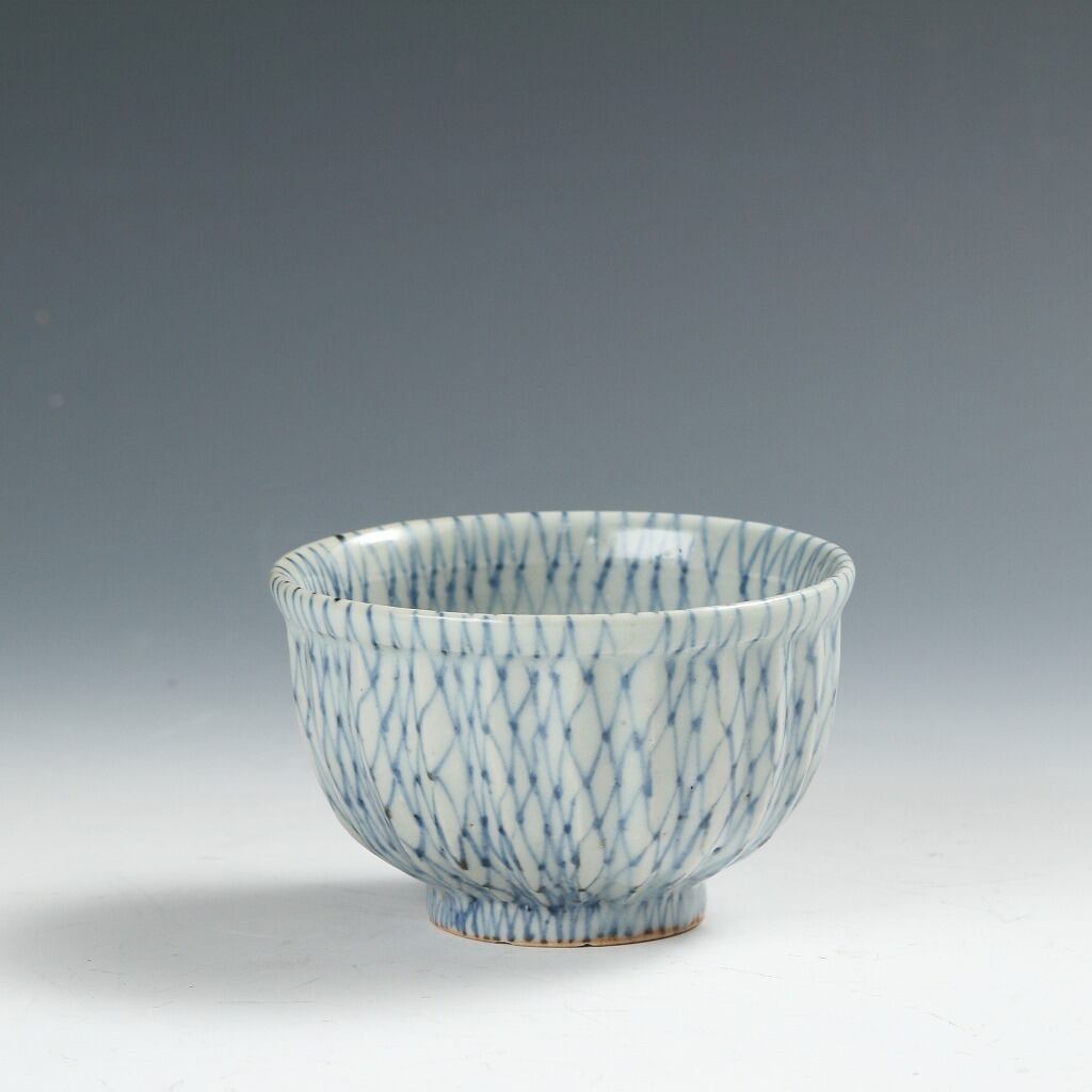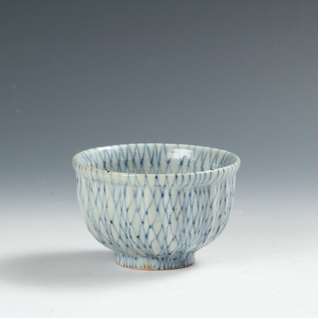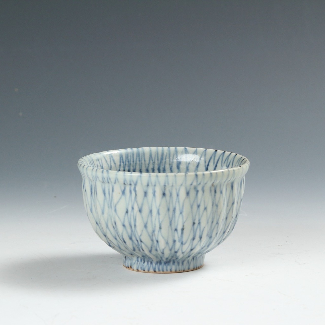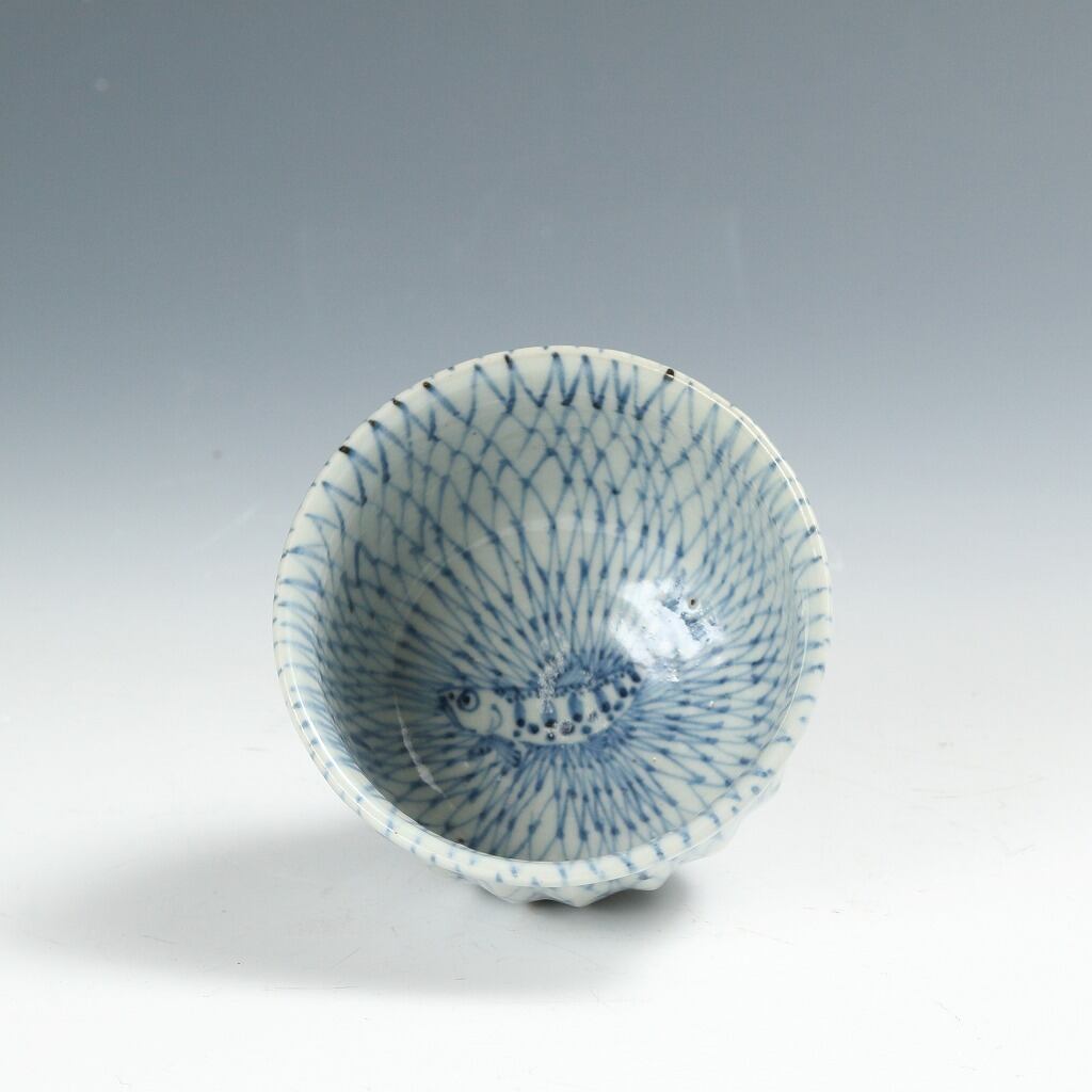 お買い得食器 在銘;「紫」手描き染付 網手川魚文 向付/ 汲出1客 小服茶碗にも 懐石道具 和食器 抹茶 tea chado ware おしゃれな器 近代工藝作家/伝統工芸工房 vintage ヴィンテージ 陶芸 陶磁器 古陶磁 porcelain, モダン茶道具 tea chado ware 裏千家/表千家 茶事/茶会道具 art piece dbsy15921-ミ5