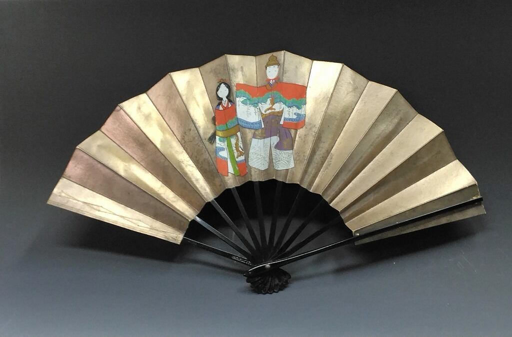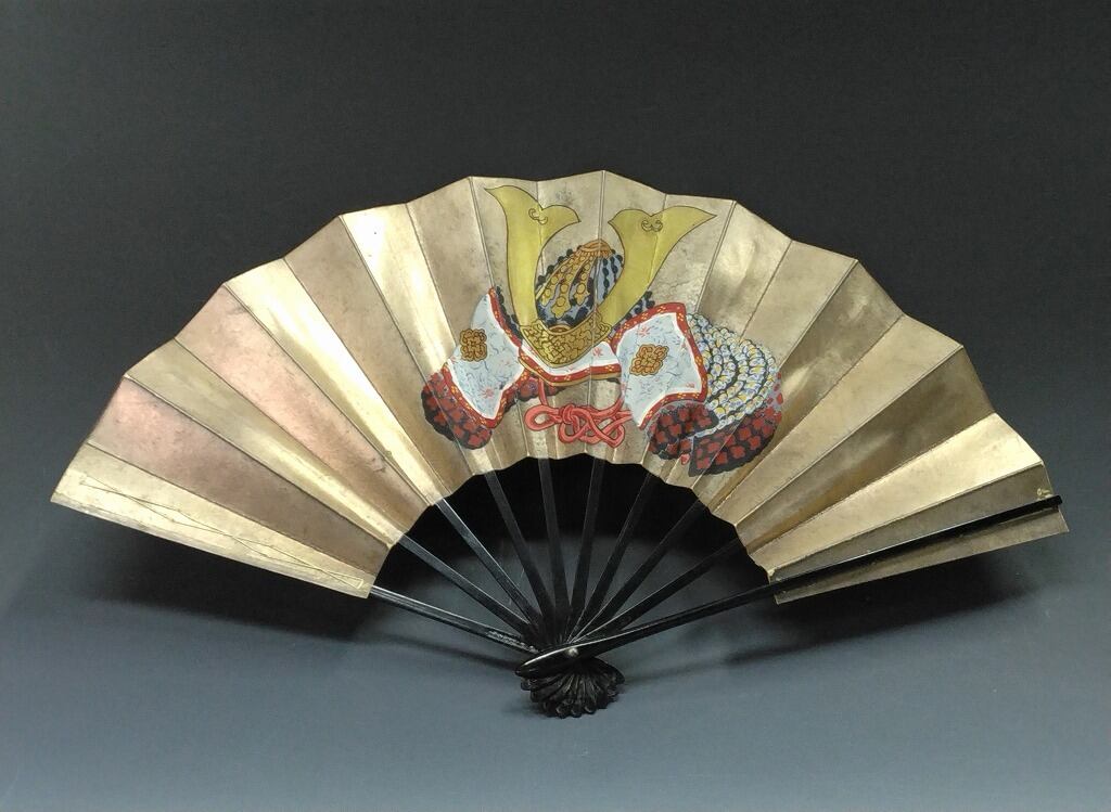 時代もの 有職立雛絵・兜絵 銀地飾扇 / 端午・上巳(桃)節句 dbsy15923-s