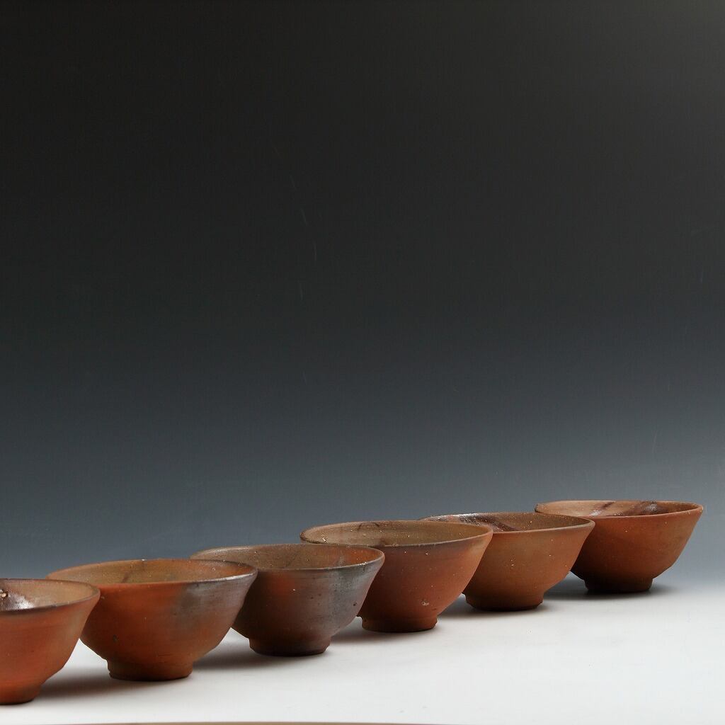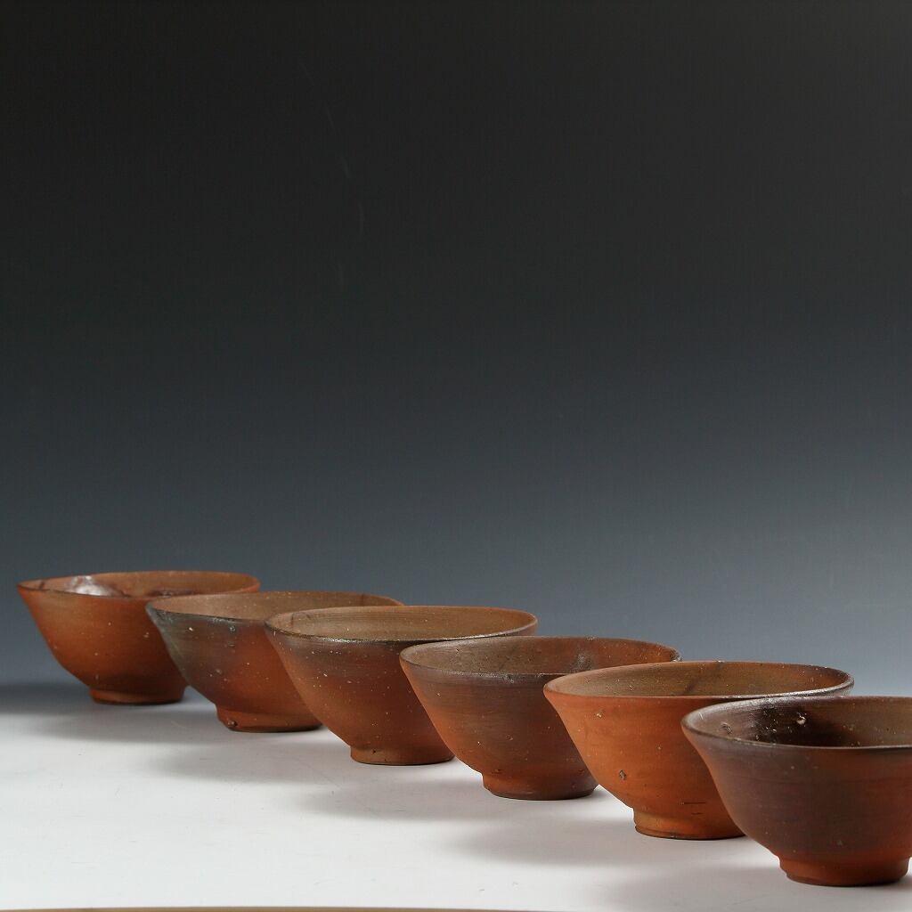 名工 森本英助|MORIMOTO Eisuke(岡山, 1941- ) 備前 飯茶碗 6客揃 共箱 和食器 日本料理 おしゃれな器 現代工藝作家/伝統工芸工房 デッドストック used 陶芸 陶磁器 古陶磁 porcelain, 高級料亭,レストラン食器美術品/art piece dbsy15973-ミ