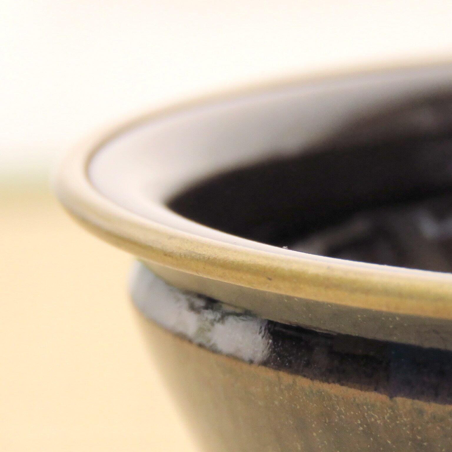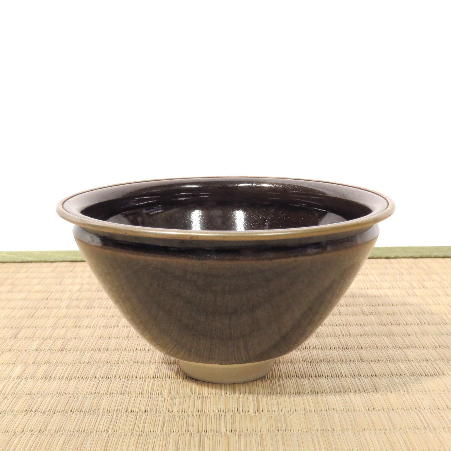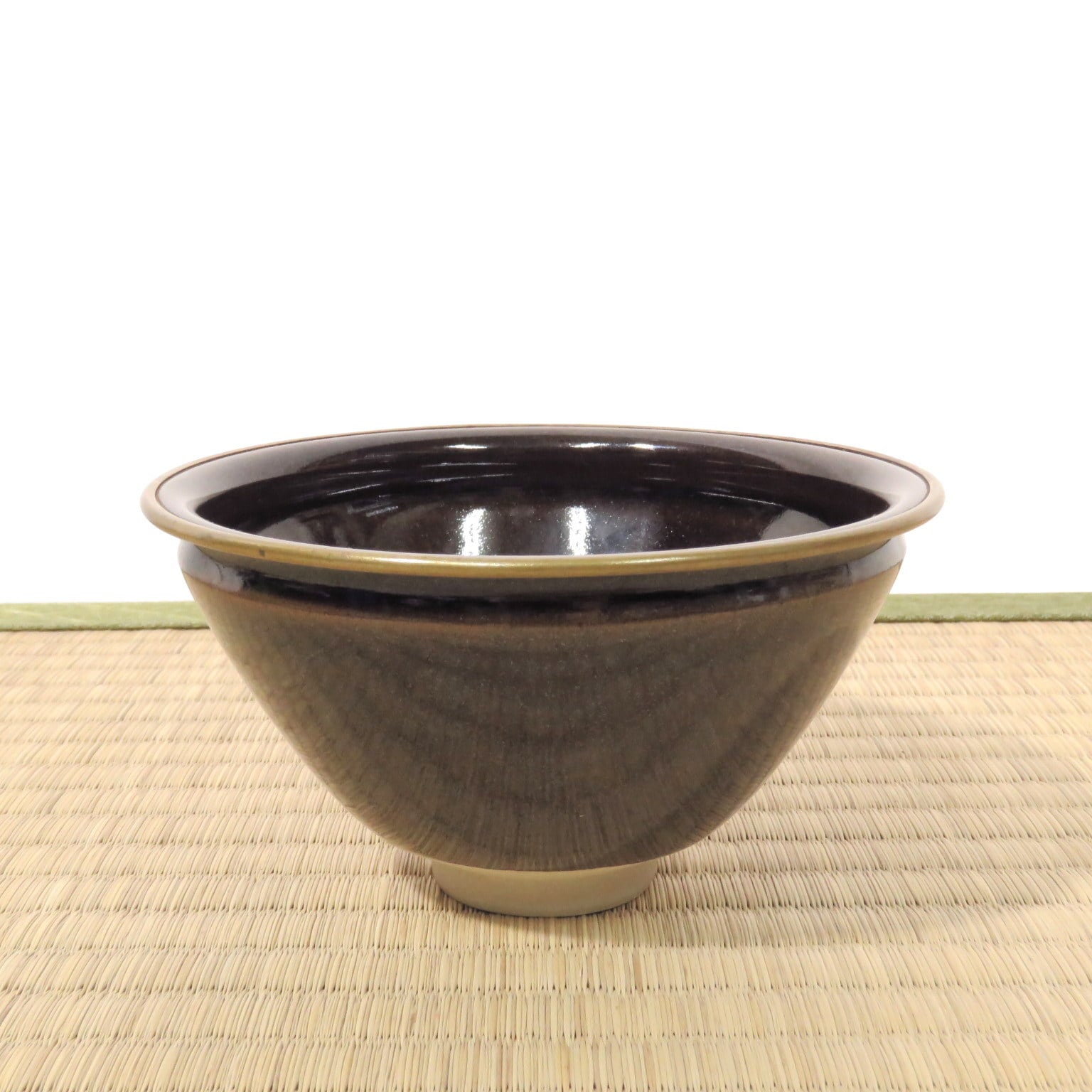 京都 万代 草山 覆輪付 天目茶碗 唐花双鳥長斑錦 仕覆添 b68-z