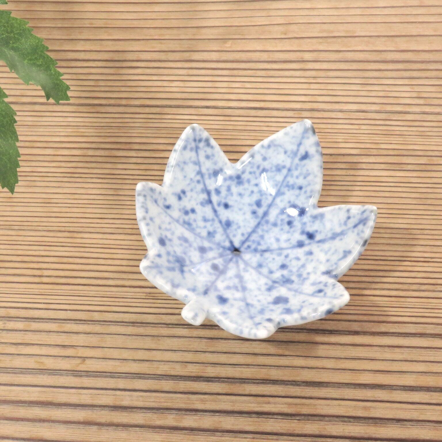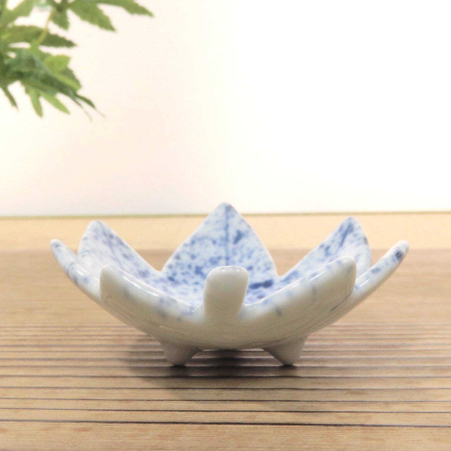在銘 清水焼(作者不詳) 染付 吹墨 楓形足付豆皿1客 dbsy6528-z | こがん堂 大阪・梅田のアンティークショップ・古美術専門店