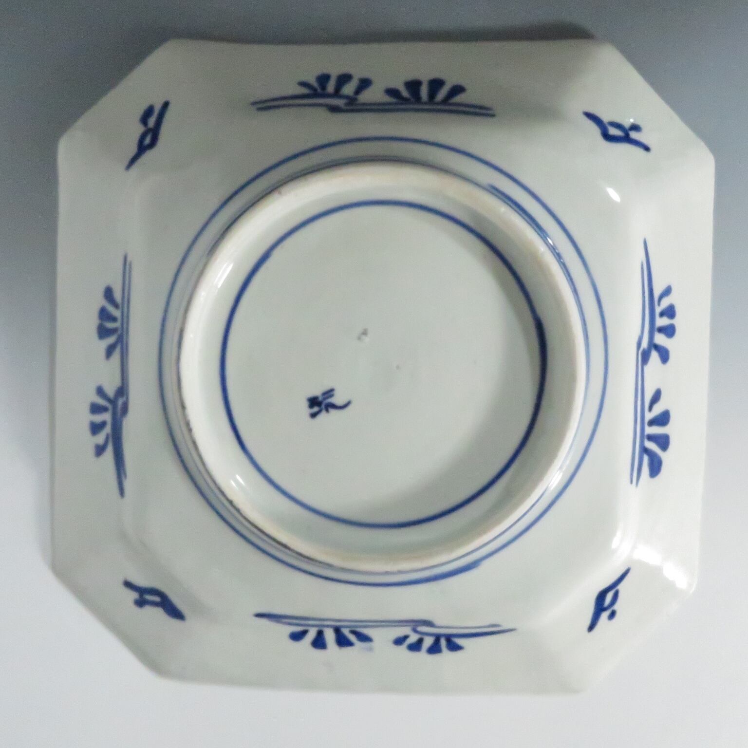 染付 線描山水文角皿 明治期(1880年)頃 (B) dby9243-q