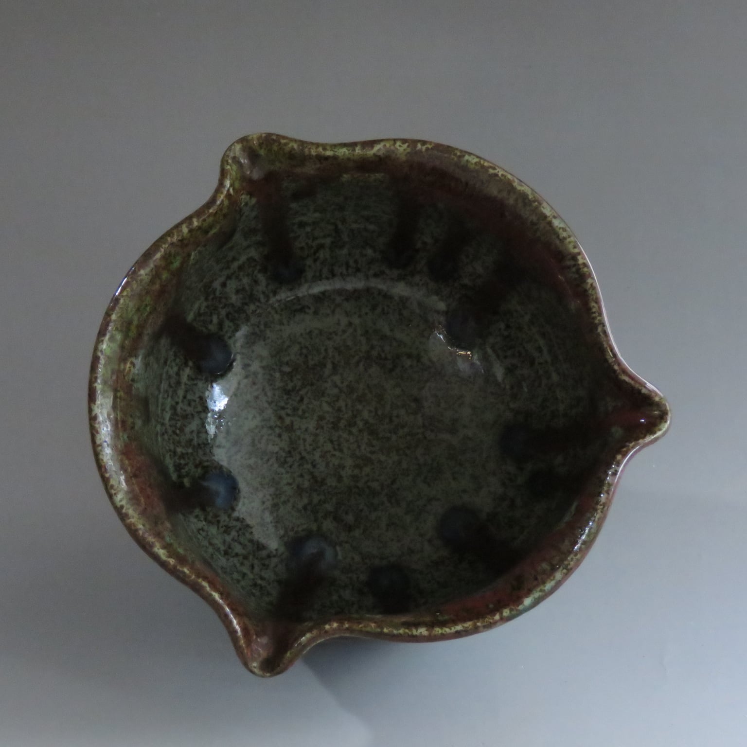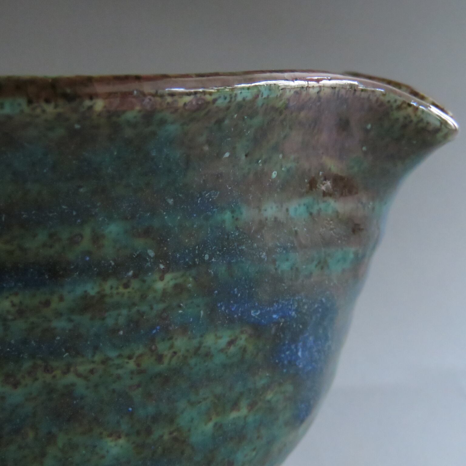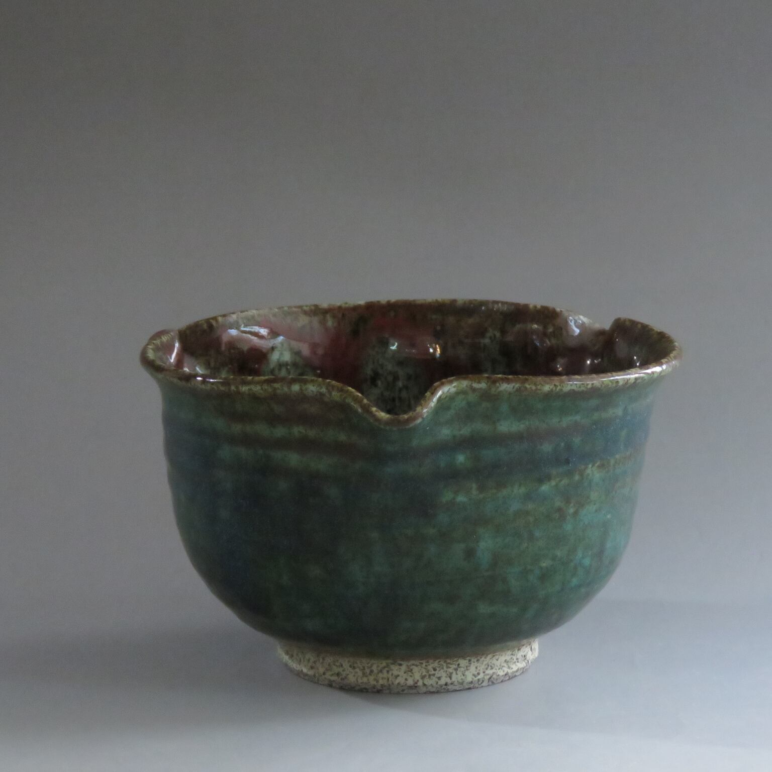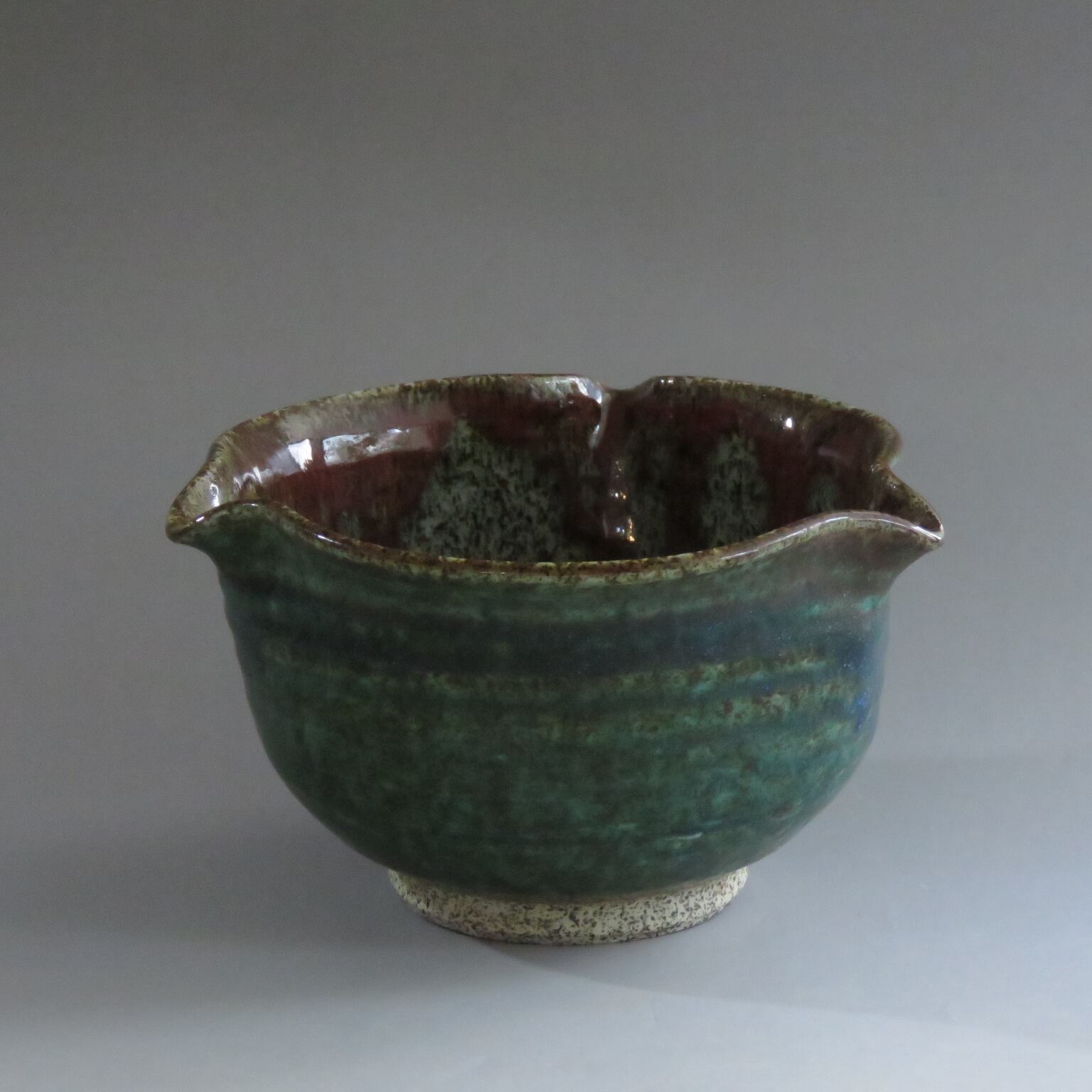 無銘 緑釉 内辰砂掛流し 三方片口鉢 水切れ良 抹茶注ぎ分けにも dbsy9912-y