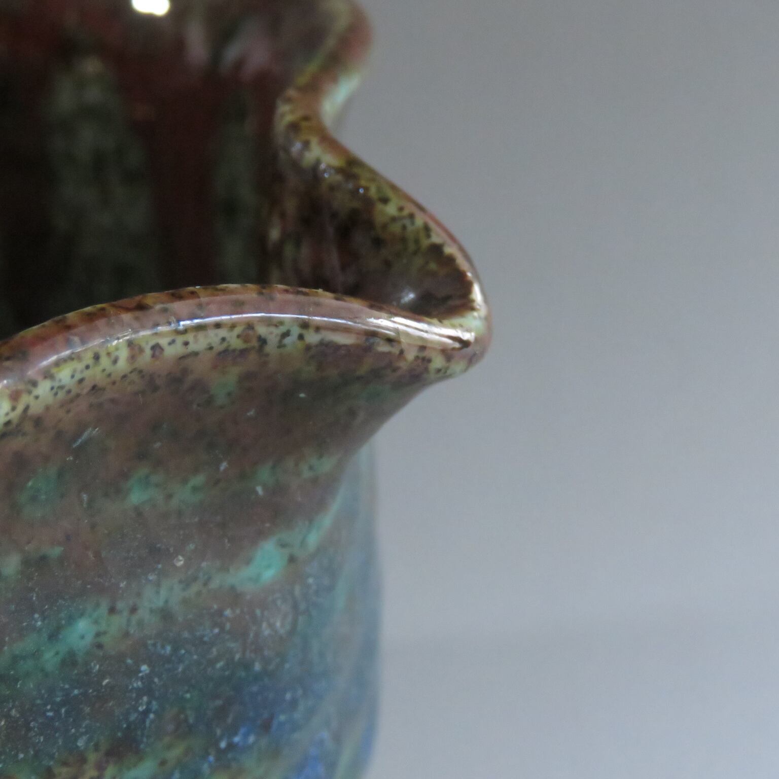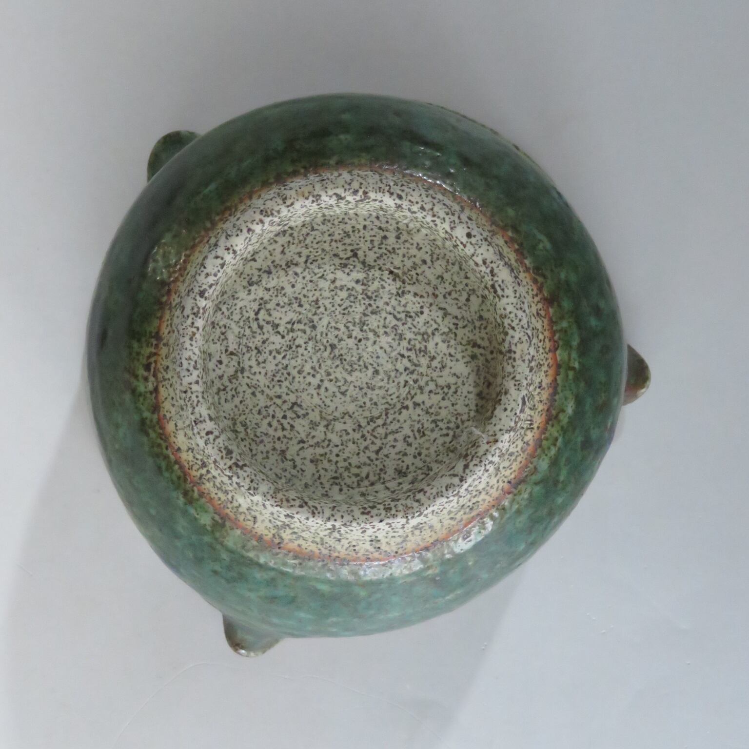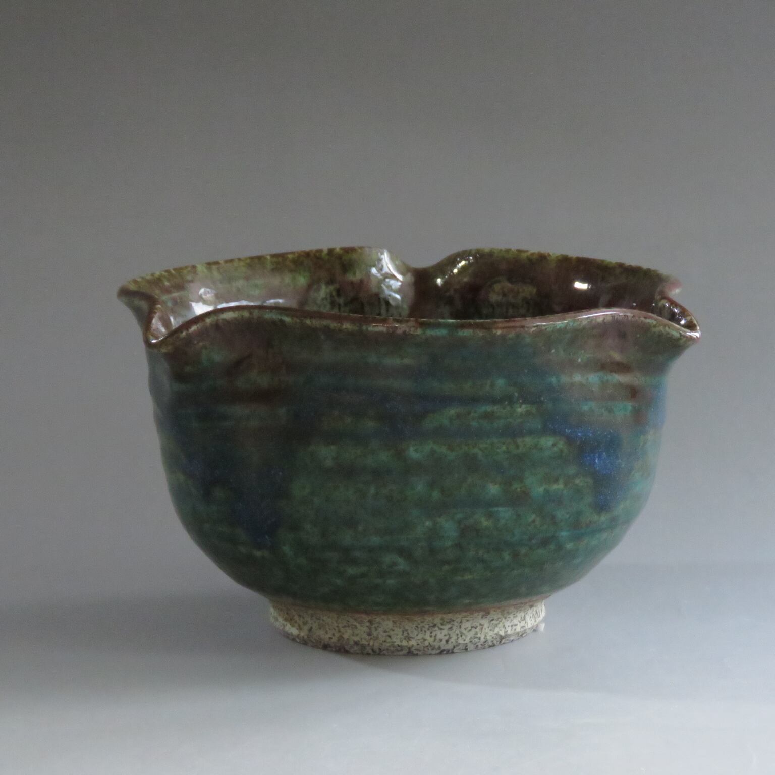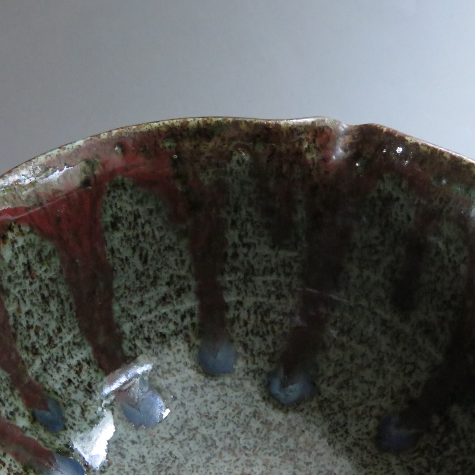 無銘 緑釉 内辰砂掛流し 三方片口鉢 水切れ良 抹茶注ぎ分けにも dbsy9912-y