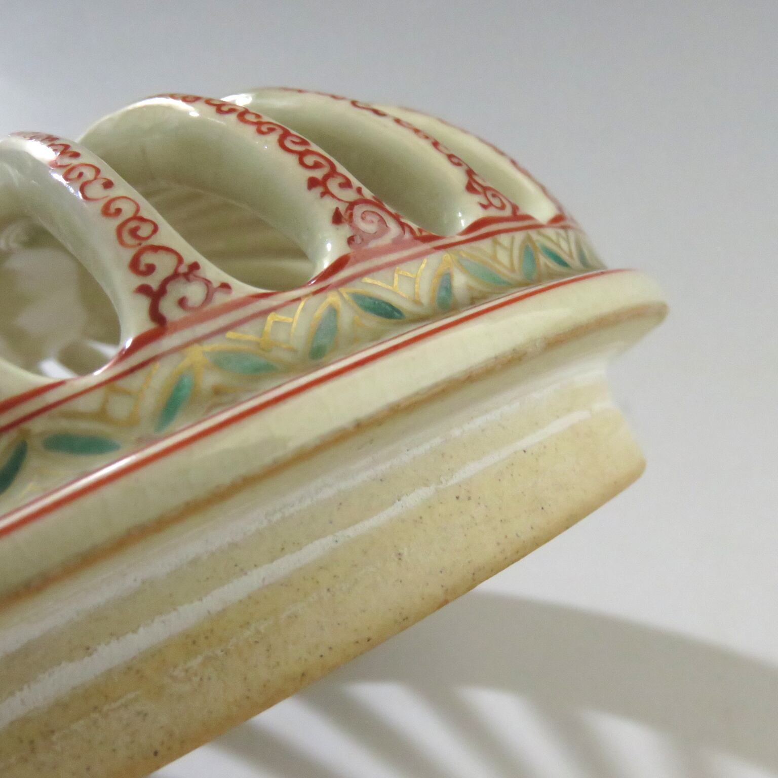 加賀月華(清香堂 KAGA-Gekka 三重 1888-1937) 萬古窯 菊穂家耳付香炉 床飾 dbfy9971-e