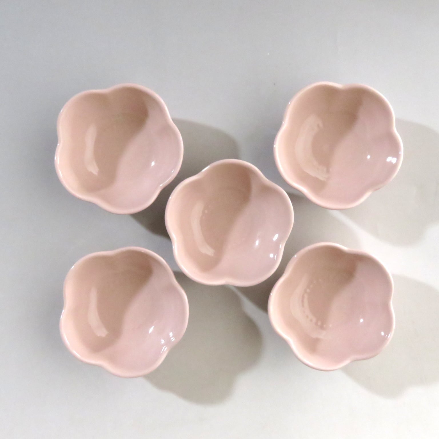 京都 川尻禎山 紅梅型のぞき 小向付 豆皿 5客 和食器 懐石 おしゃれなうつわ dbpy9976-g