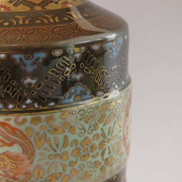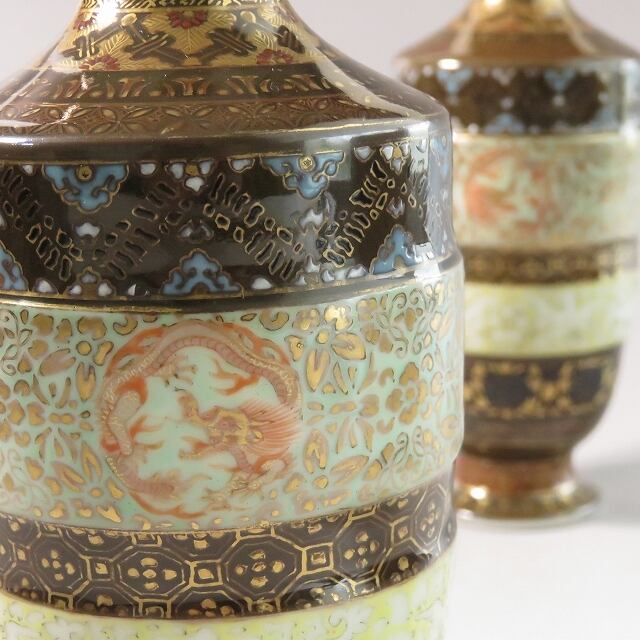 オールド香蘭社 色絵金彩 地紋丸龍絵 飾り瓶 1対(香蘭社初期作品 /佐賀 有田, 1880年頃) dby11077-9