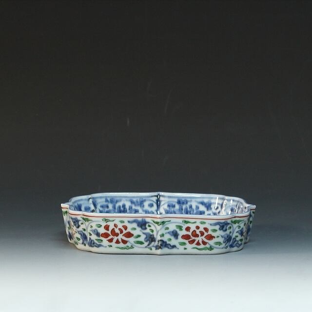 清水焼 素明窯 彩華唐草絵 輪花向付皿 6客セット dby10952-a