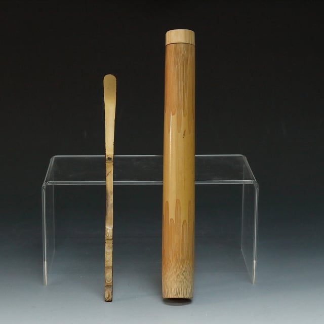 白竹 数節茶杓 無地茶杓筒 セット 新品茶道具 dby11988-c